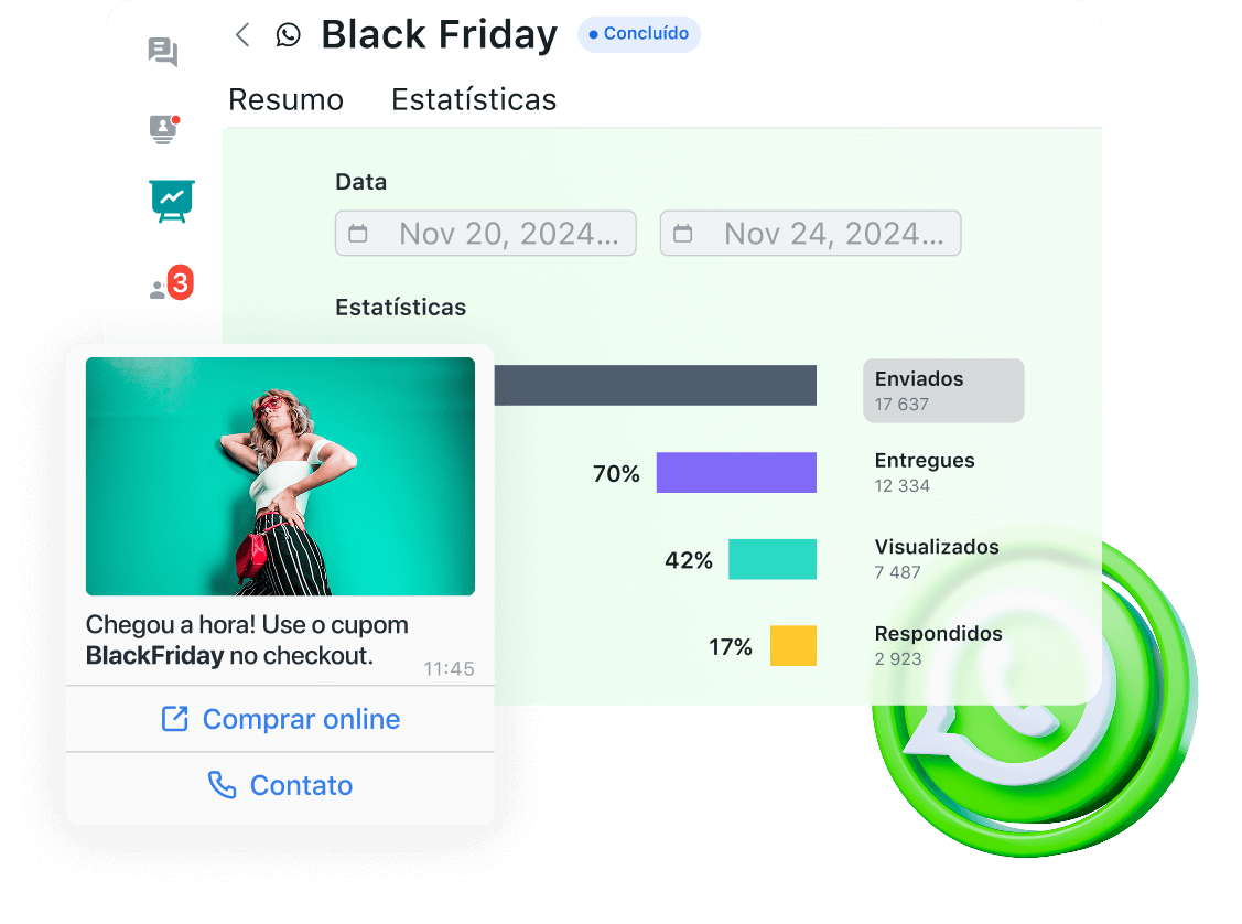 Reúna todos os canais de contato em uma única plataforma: chat online, redes sociais, aplicativos de mensagem e chamadas telefônicas. Interaja com os clientes usando o canal que eles preferirem