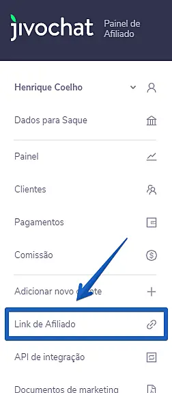 Você verá um link como na imagem abaixo de "Link de Afiliado" em seu Painel. Clique nele: