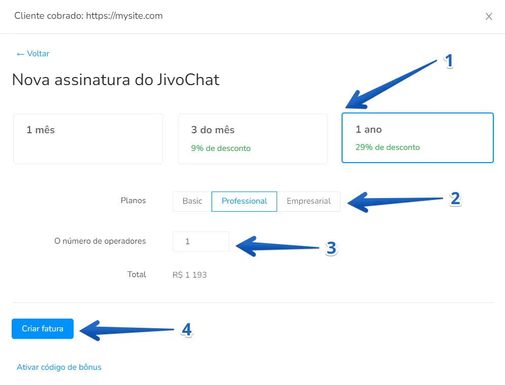 3º Passo: Gerar uma fatura