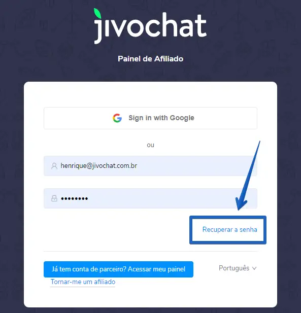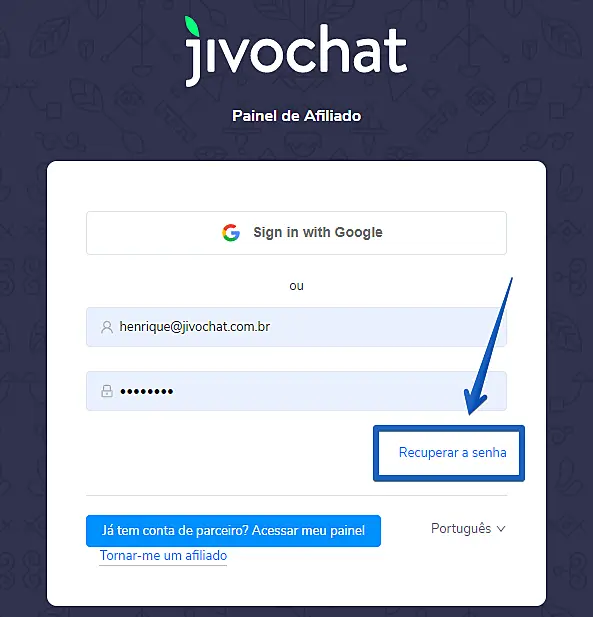Este tutorial ensinará você sobre o processo de como recuperar a senha da conta de Afiliado do JivoChat.