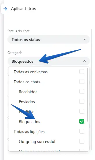 Ao visualizar a lista de conversas, filtre por "Bloqueados".