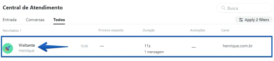 Se deseja desbloquear um visitante ou visualizar os detalhes do mesmo, encontre o visitante desejado e clique em qualquer local em cima da linha do arquivo do chat para abrir a conversa.