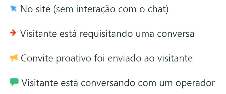 Por favor, preste bastante atenção, esse recurso não serve para elaborar estatística de contagem de visitantes em seu site. Esse recurso mostra apenas visitantes que veem seu chat online, e permite à você convidá-los manualmente para iniciar uma conversa. Se o visitante visualizar o formulário off-line (por exemplo, se você estiver no modo Ausente ou acabou de se conectar), ele não será mostrado na lista de visitantes até atualizar a página ou acessar uma outra página e ver o chat online.