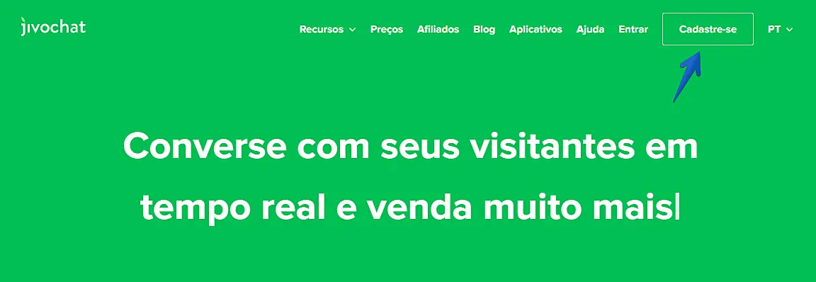 Para instalar o chat em tempo-real no seu site, você precisará criar uma conta em jivochat.com.br: