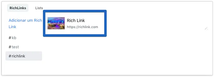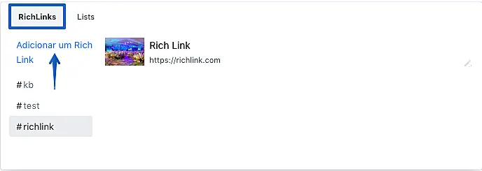 Clique na aba "RichLinks" e depois em "Adicionar um Rich Link".