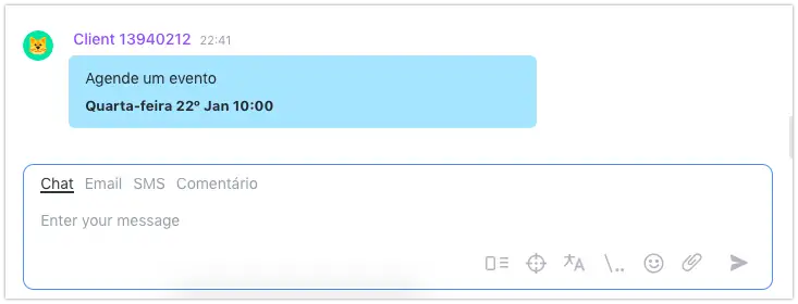 Depois que o cliente selecionar a data e horário, você receberá uma mensagem no chat com a data e horário selecionados pelo cliente.