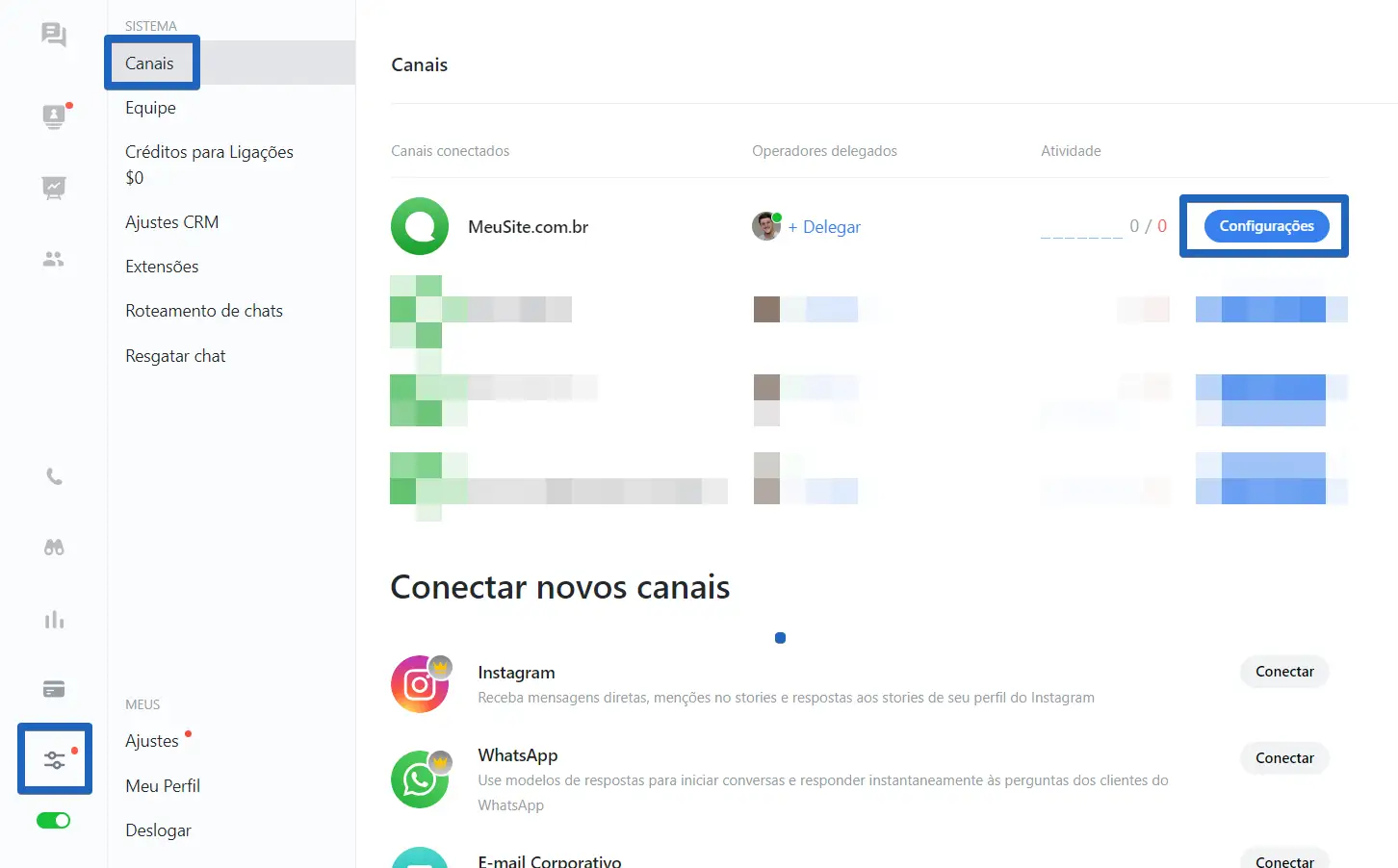 Para customizar os textos padrões do widget do JivoChat no seu site, abra seu Aplicativo Web do JivoChat ou algum de nossos aplicativos Desktop e acesse as Configurações > Canais > Configurações.