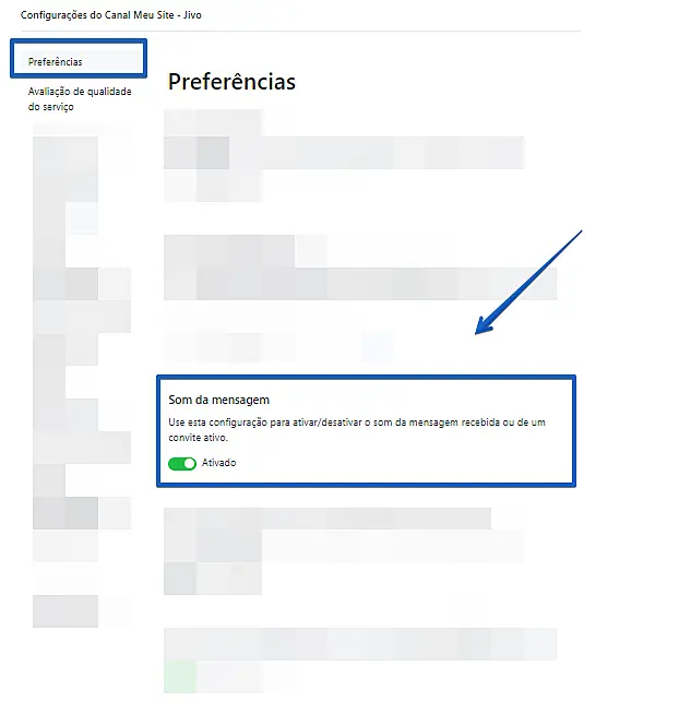 Nota: Se você decidir desabilitar as notificações sonoras do widget do seu site, é importante observar que isso também impedirá a indicação sonora de quaisquer novas mensagens do cliente em seu site.