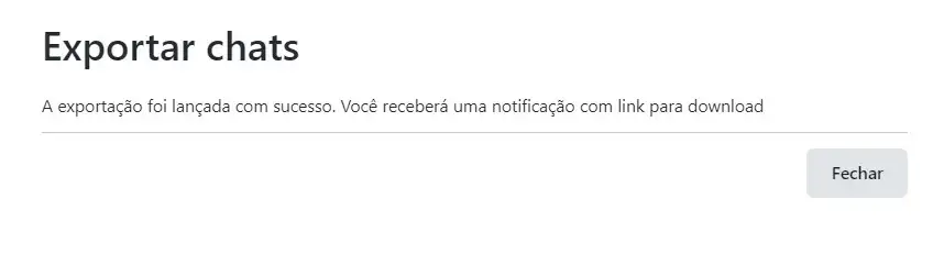 Uma notificação será exibida na tela confirmando o sucesso da exportação e em breve você receberá o link para download.