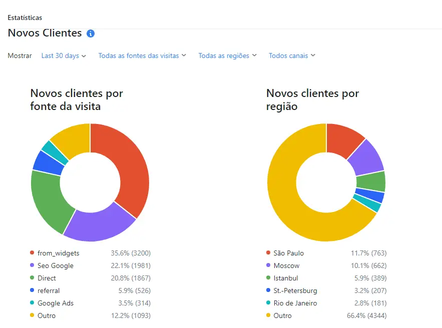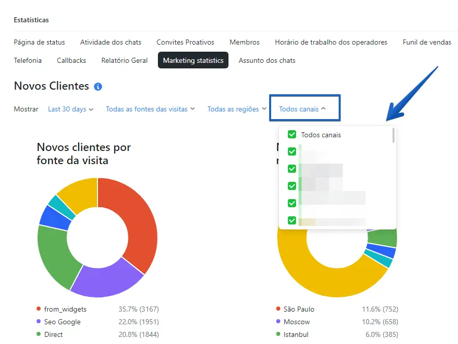 Nota: as estatísticas de marketing estão disponíveis nos planos PRO e Enterprise.