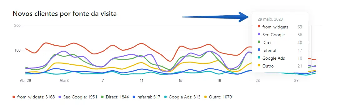 A lista mostrará as principais fontes de referência e o número de vezes que aquele cliente visitou.