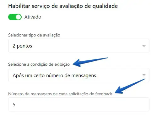 Condição de exibição: temos dois tipos de gatilhos para a avaliação do atendimento aparecer para o cliente