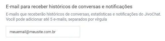 1.E-mail para receber os históricos das conversas e notificações - os históricos das conversas e outras notificações (expiração da licença, notícias, atualizações entre outras) serão enviados para este endereço de e-mail.