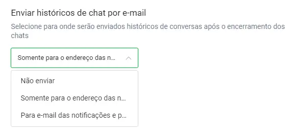 Não enviar - os históricos das conversas não serão enviados para nenhum e-mail se você selecionar essa opção. Essa é a opção padrão.