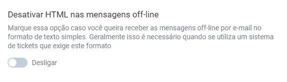 7.Se você trabalha com sistemas de tickets (por exemplo: sistemas de helpdesk, CRM, etc.), recomendamos que você habilite a opção "Desativar HTML nas mensagens offline".