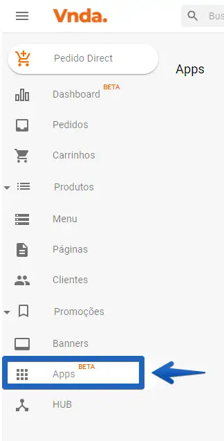 Acesse seu painel da Vnda e vá em Apps no menu esquerdo.