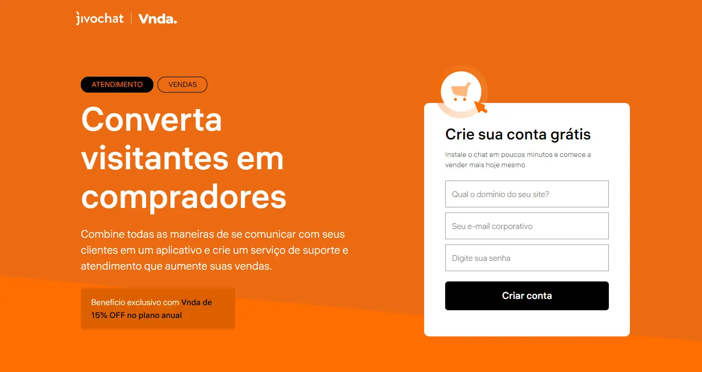 Criar conta no JivoChat pelo painel Vnda
