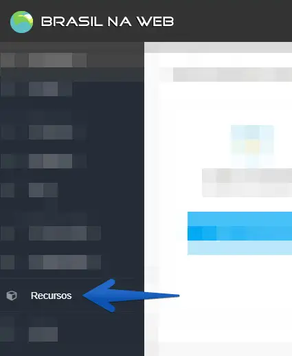 1. Acesse o painel administrativo da Brasil na Web e, no painel à esquerda, acesse o menu Recursos.