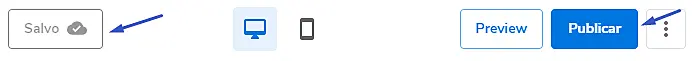 Agora é só "Salvar" suas alterações na barra superior do seu editor e clicar em "Publicar" para finalizar a instalação do chat no seu site.