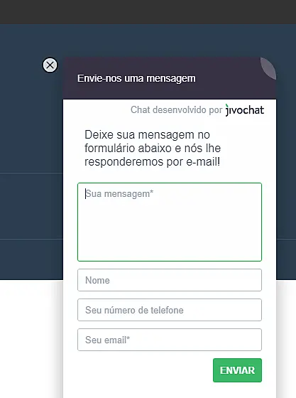 Agora, clique em "Contatar" para acessar a página de cadastro do JivoChat.