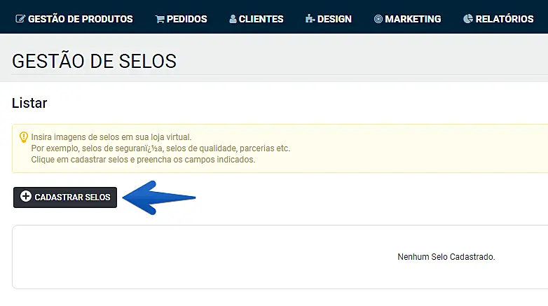Clique em "Cadastrar Selos".