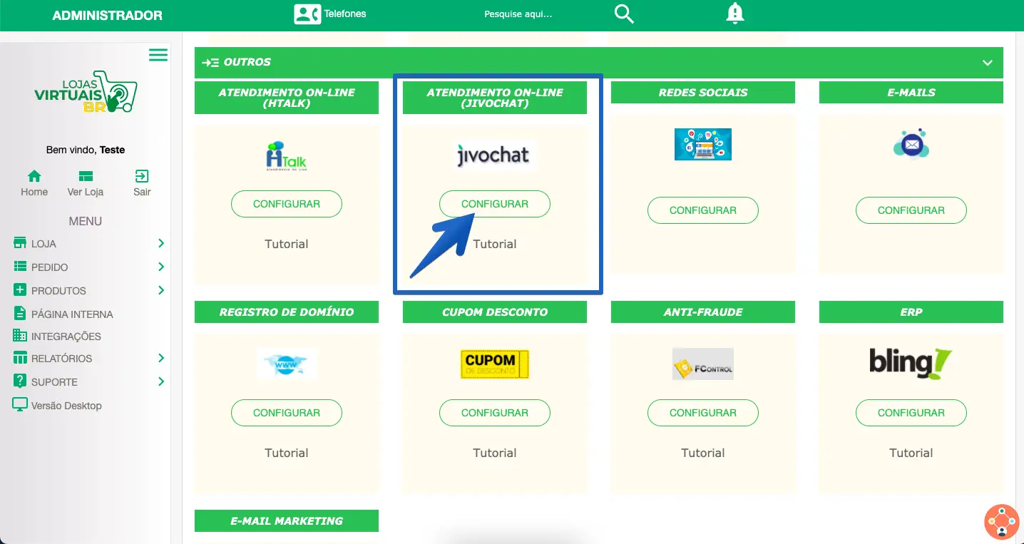 2. Na seção Outros, você encontrará o JivoChat. Clique em Configurar.