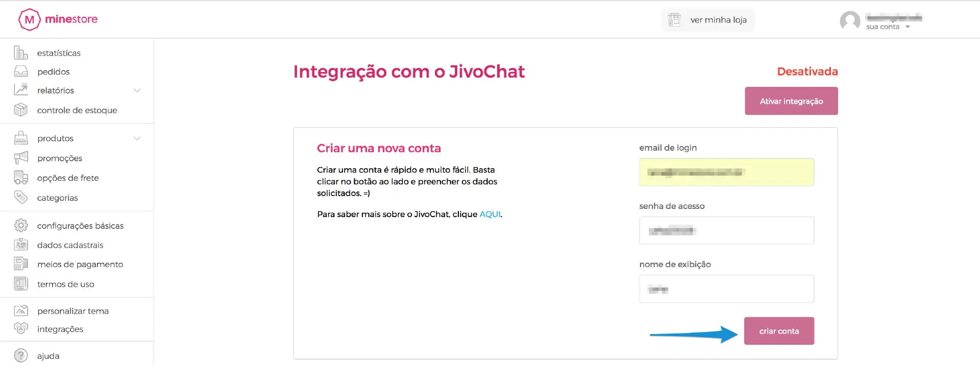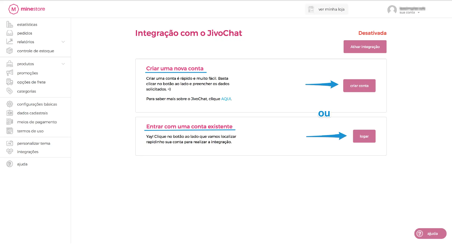 Este tutorial ensinará você sobre o processo de instalação do JivoChat dentro da plataforma minestore.