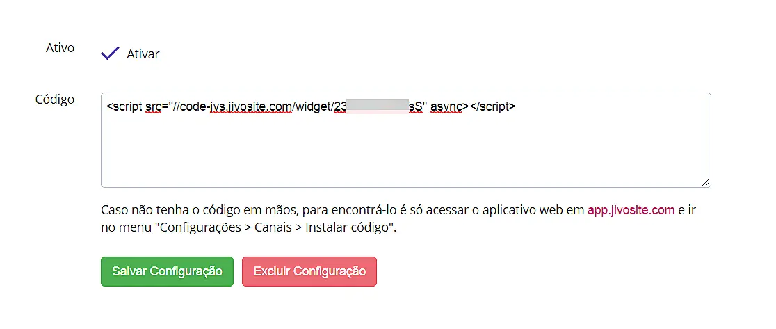 2. Instale o código do JivoChat em seu site: