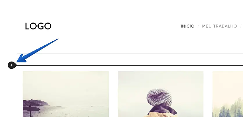 3.Posicione o mouse sobre a seção principal do site e clique no botão Mais (+).
