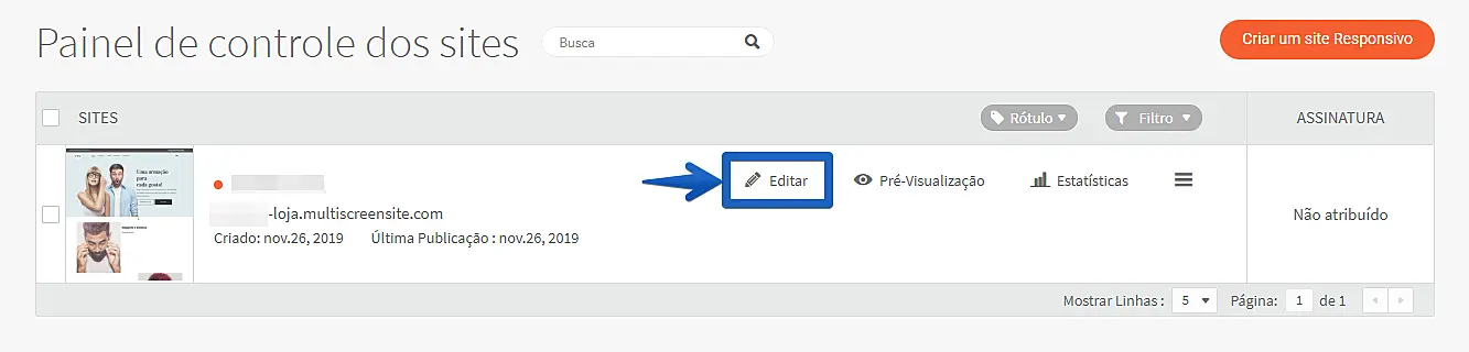 Primeiro, acesse o painel administrativo da Duda e clique para "Editar" seu site.