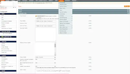 - Clique em "SEO e Configurações" e logo em seguida em "Cabeçalho HTML".
