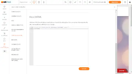3. Como instalar o JivoChat no Criador de Sites do UOL Host