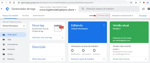 Obs: O identificador (ou ID) GTM é gerado assim que o cliente cria sua conta dentro do Google Task Manager