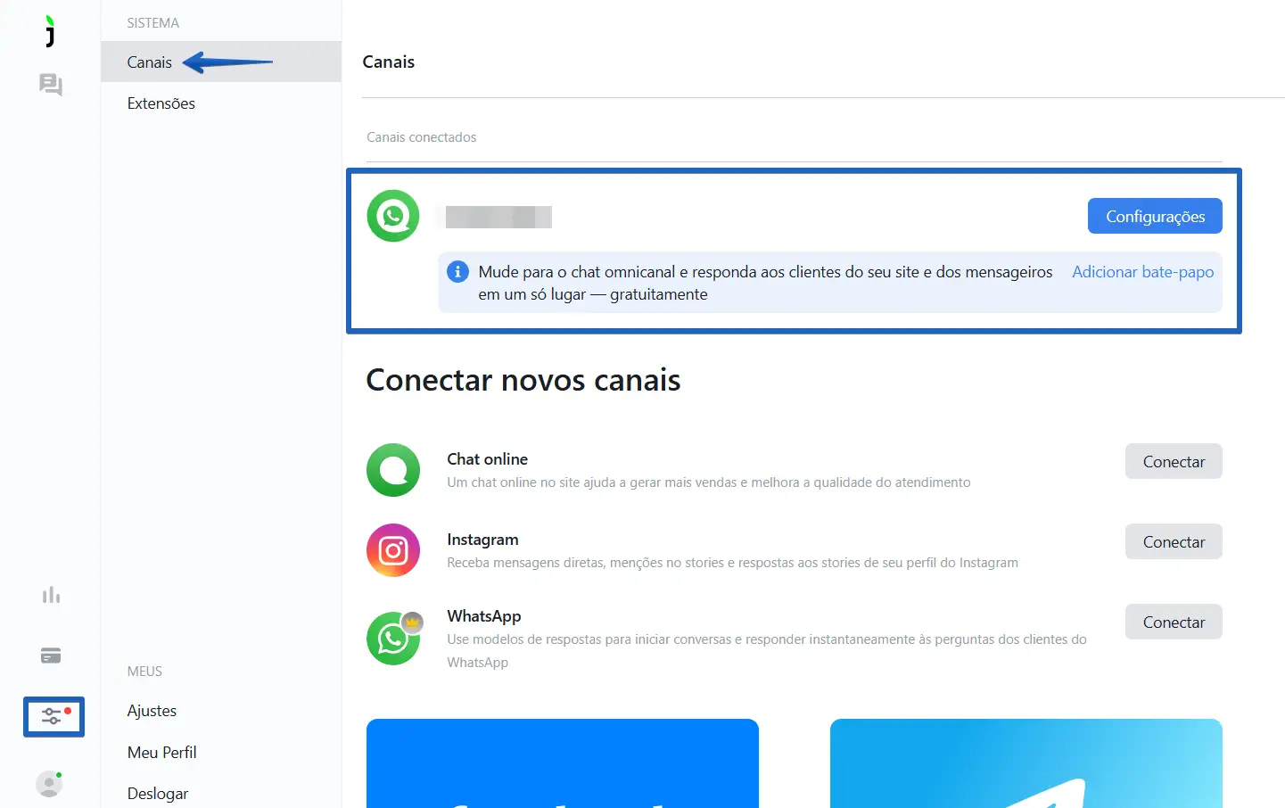 1. Faça login/crie sua conta na plataforma da JivoChat;