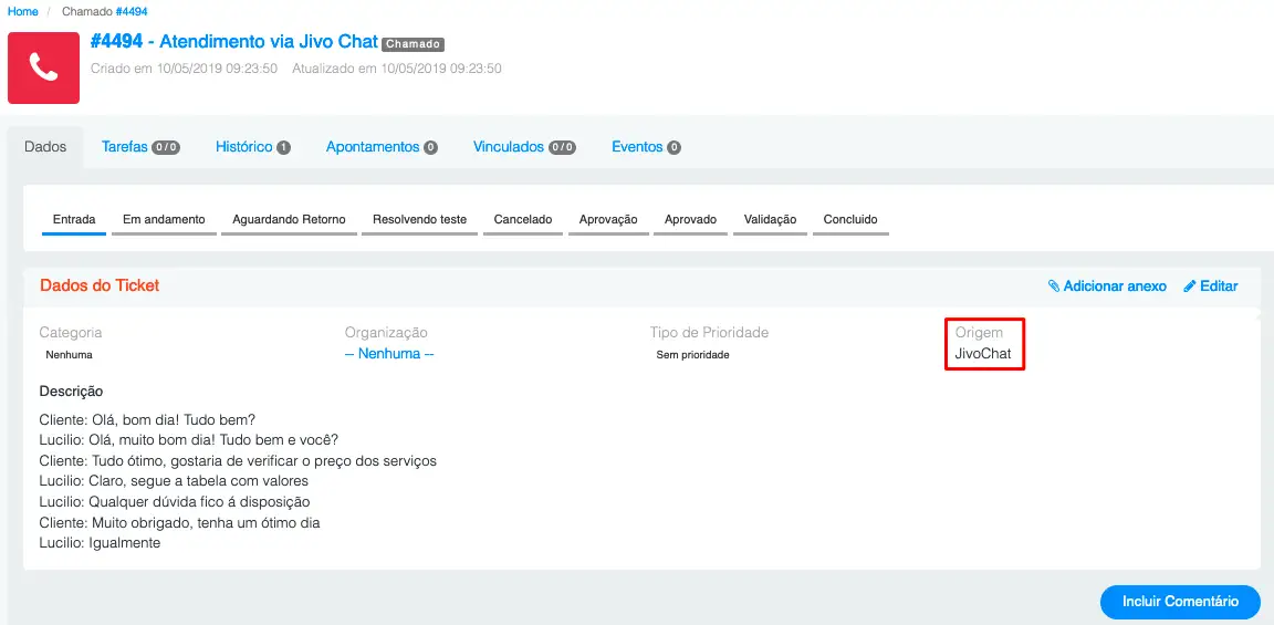 Pronto! A partir de agora, todas as conversas finalizadas no JivoChat serão enviadas automaticamente como chamados na sua conta do Acelerato.