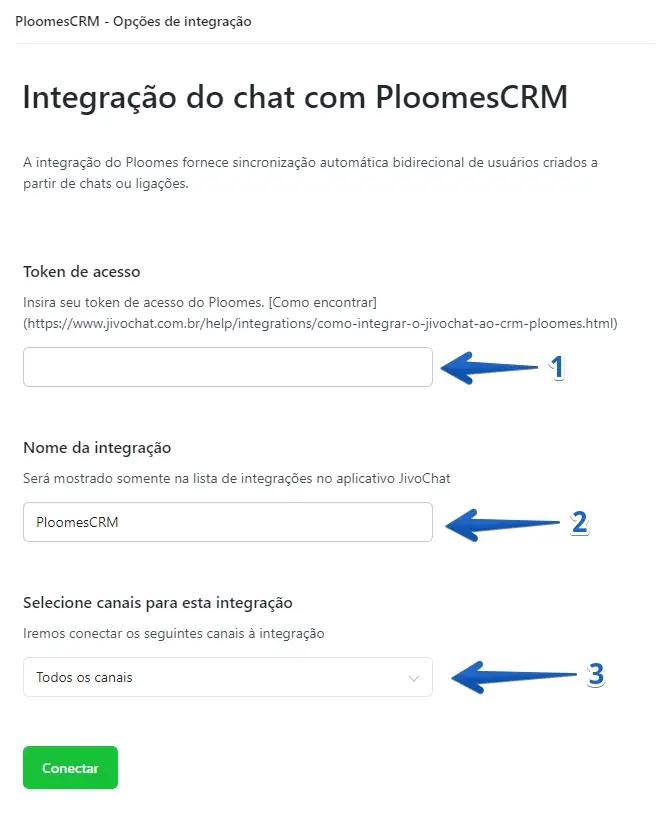 Para integrar o JivoChat ao seu CRM Ploomes, basta seguir os passos abaixo: