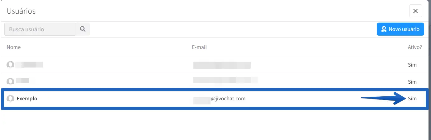 Agora, confirme se o usuário está ativo e clique em cima dele para abrir as configurações.