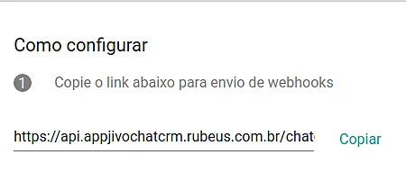Fazendo isso, você terá acesso à URL que deverá ser inserida nas configurações do canal do seu site na conta do JivoChat. Copie a URL gerada.
