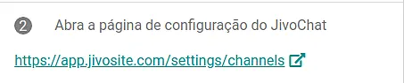 Após copiar a URL, clique no link para abrir a página de configurações de Canais do seu JivoChat.