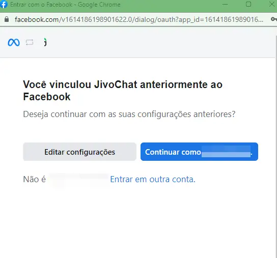 Passo 9: Verifique as permissões do aplicativo da JivoChat no seu Facebook, você pode seguir esse tutorial para verificar as permissões dos aplicativos vinculados à sua conta, em seguida clique em "entrar com o Facebook"