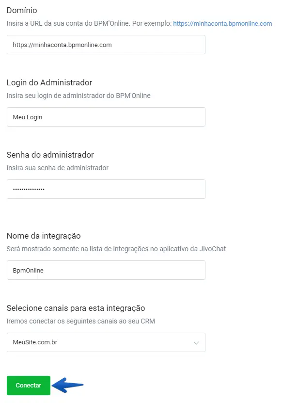4.Nome da integração: O nome que será mostrado na lista de integrações conectadas. Você pode escolher qualquer nome.