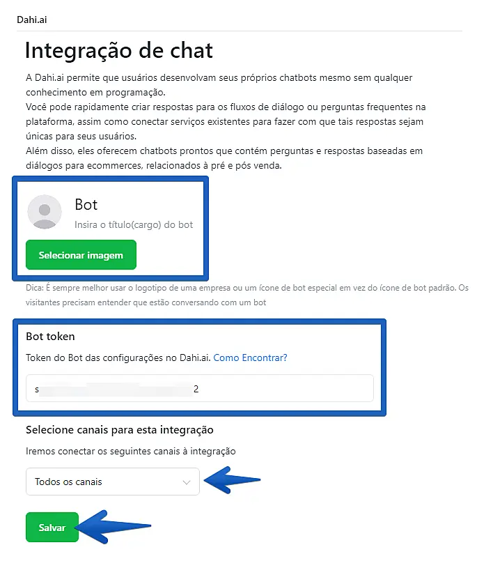 A equipe de suporte do JivoChat não pode auxiliar com a configuração do bot no painel do Dahi.ai, mas a equipe do Dahi.ai está disponível para lhe auxiliar com quaisquer dúvidas que tiver.