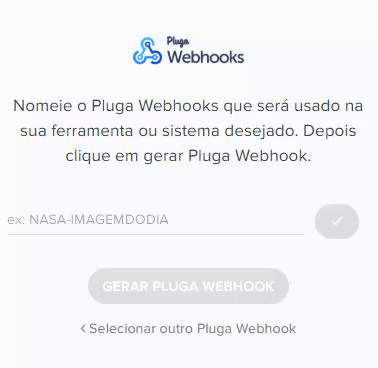 Nomeie o Pluga Webhooks que será usado para integrar o seu JivoChat e depois clique em "Gerar Pluga Webhook" conforme mostrado abaixo: