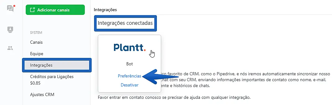 Como integrar o JivoChat ao Plantt
