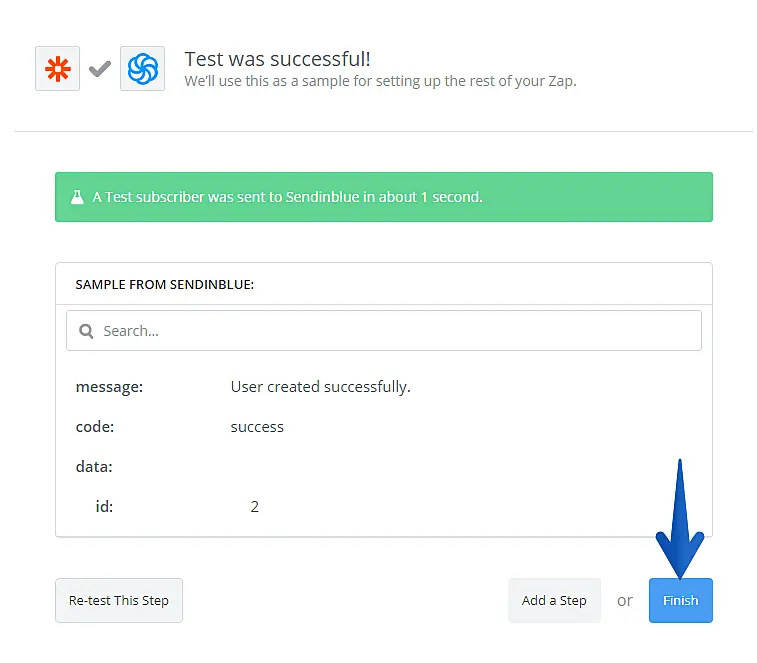 No próximo passo, você poderá enviar um teste para a SendinBlue ou pular o teste.