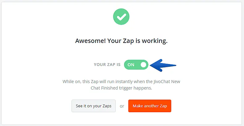 Você pode integrar o JivoChat com milhares de plataformas diferentes criando um Zap pela nossa integração com o Zapier. Com esta integração, nós enviamos o evento "chat_finished" (Chat encerrado) para que você possa encaminhar dados das conversas e clientes do seu JivoChat para qualquer um dos milhares de aplicativos disponíveis para integração no Zapier.