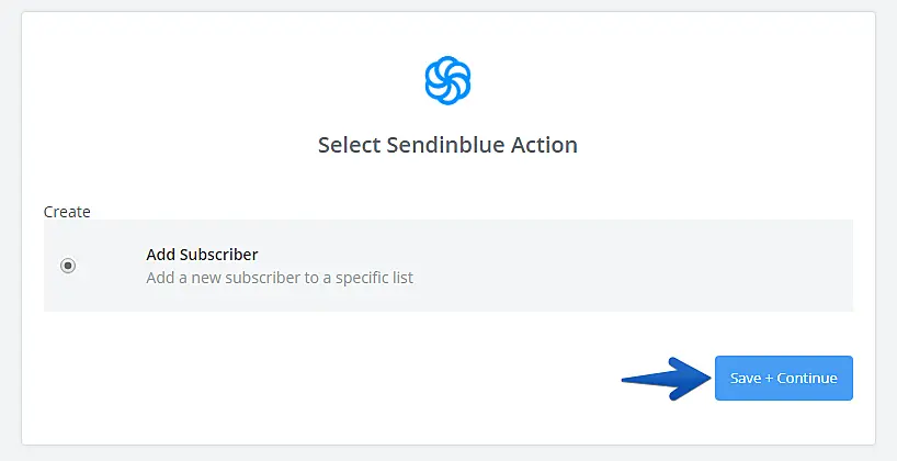 Escolha a ação desejada e clique em "Save + Continue".
