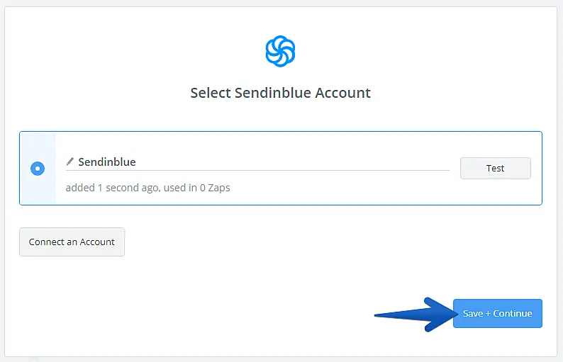 Conecte sua conta da SendinBlue clicando em "Connect an Account".