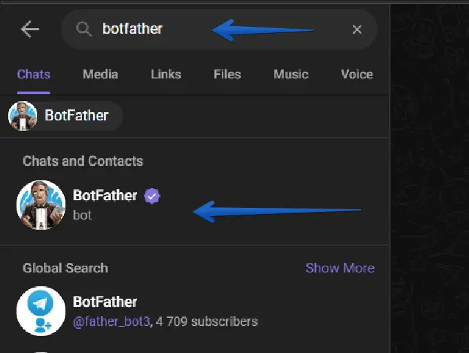 2- Procure na barra de pesquisa por "botfather"