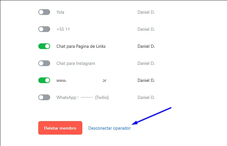 Logo após isso, vá até o fim da página e clique em "Desconectar Operador"